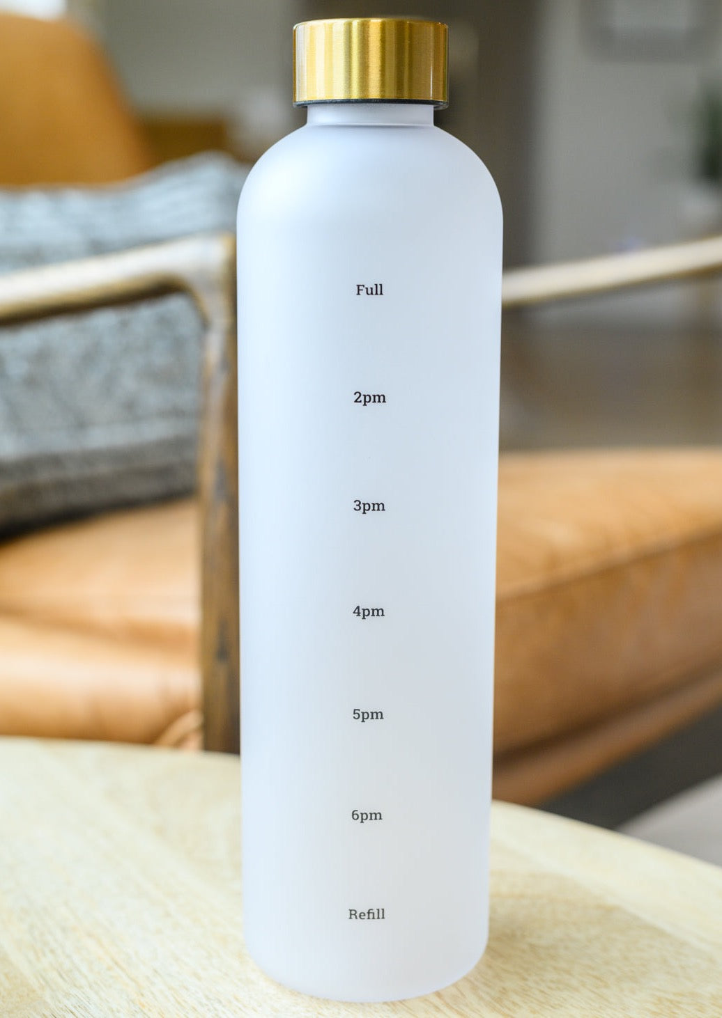 Sippin' Pretty 32 oz Translucent Water Bottle in White & Gold