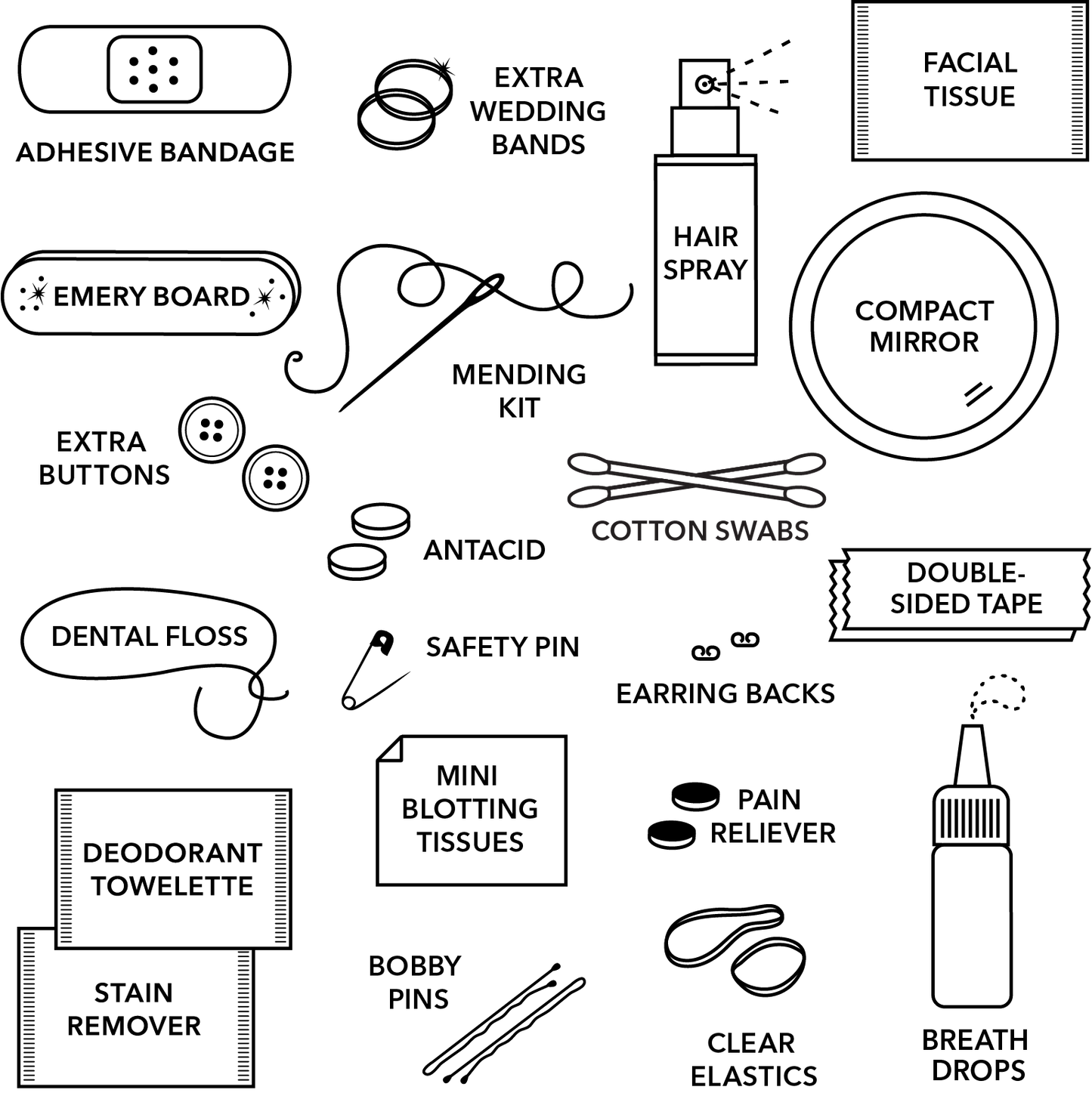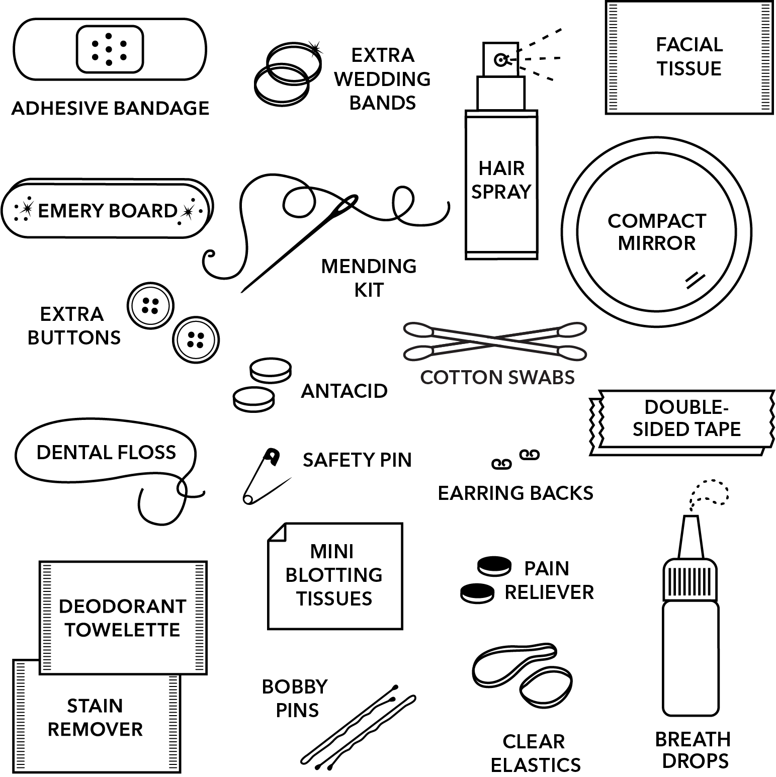 There's nothing more classic than pearls, except for the new Pearly White Minimergency® Kit for Brides by Pinch Provisions® featured with a oversized pearl zipper pull for an extra special touch. This kit is chock-full of 21 little essentials to save the big day.
