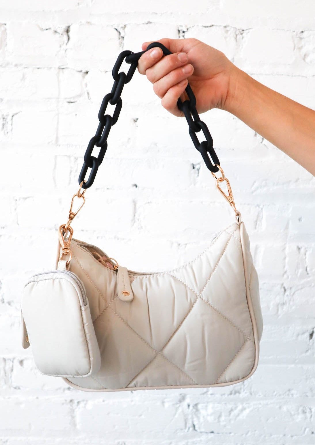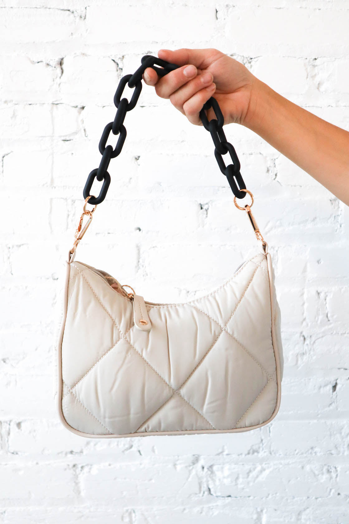 You'll be the envy of all your friends with this chic quilted hobo bag with chain. This stylish crossbody bag is handmade from high-quality materials, making it unbreakable and perfect for everyday use. The adjustable shoulder strap ensures a comfortable fit no matter what you're wearing. Plus, the spacious interior provides plenty of room to store your essentials without being bulky or heavy. With its sleek design and eye-catching details, this hobo bag will take any outfit to the next level!