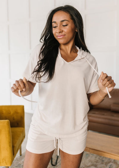 Timeless Textured Crewneck Top and Drawstring Shorts Set