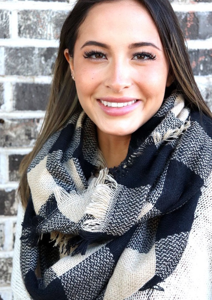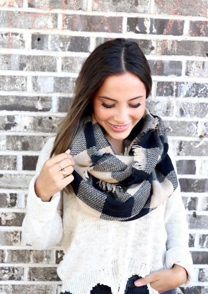 Plaid Black & Tan Infinity Scarf.