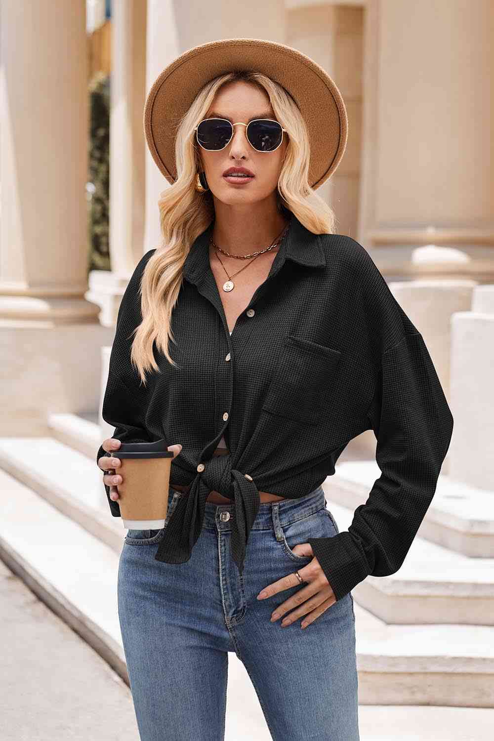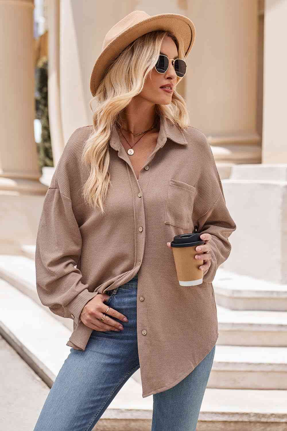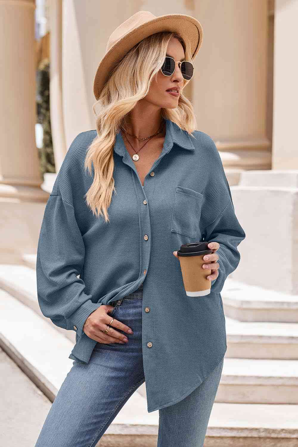 Collared Neck Dropped Shoulder Shirt