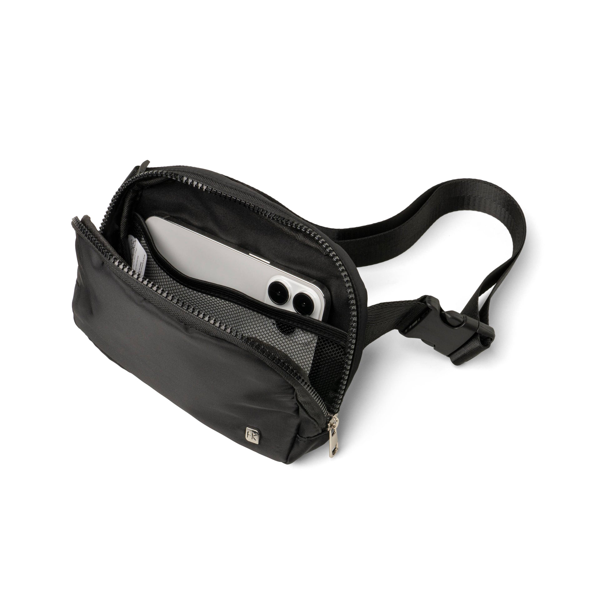 Don’t hesitate to pick up this cult classic bag! Ultra lightweight with enough space for your essentials, it’s loved by all for workouts, travel and everyday wear. Easy-to-clean fabric Spacious zippered compartment 3 interior mesh slip pockets Back zippered pocket Adjustable woven waistband (44” fully extended) Easy-clip buckle Dimensions: 8” W x 6” H x 1.5” D Merchandising Details: Carded and peggable
