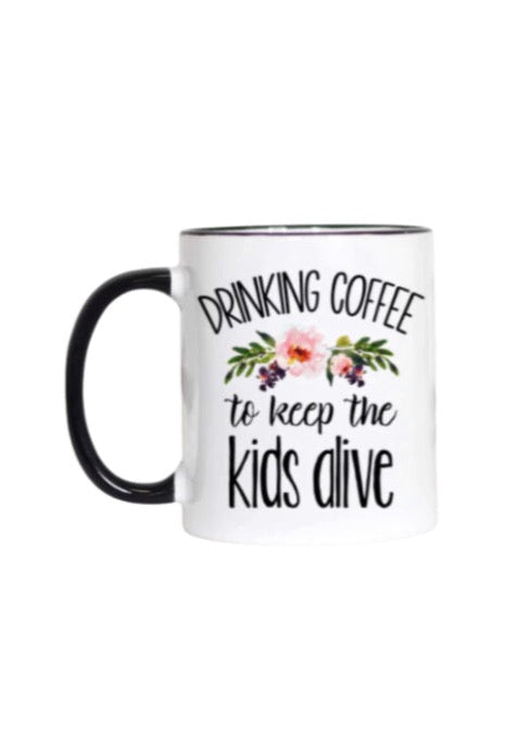Drinking Coffee To Keep the Kids Alive Mug
