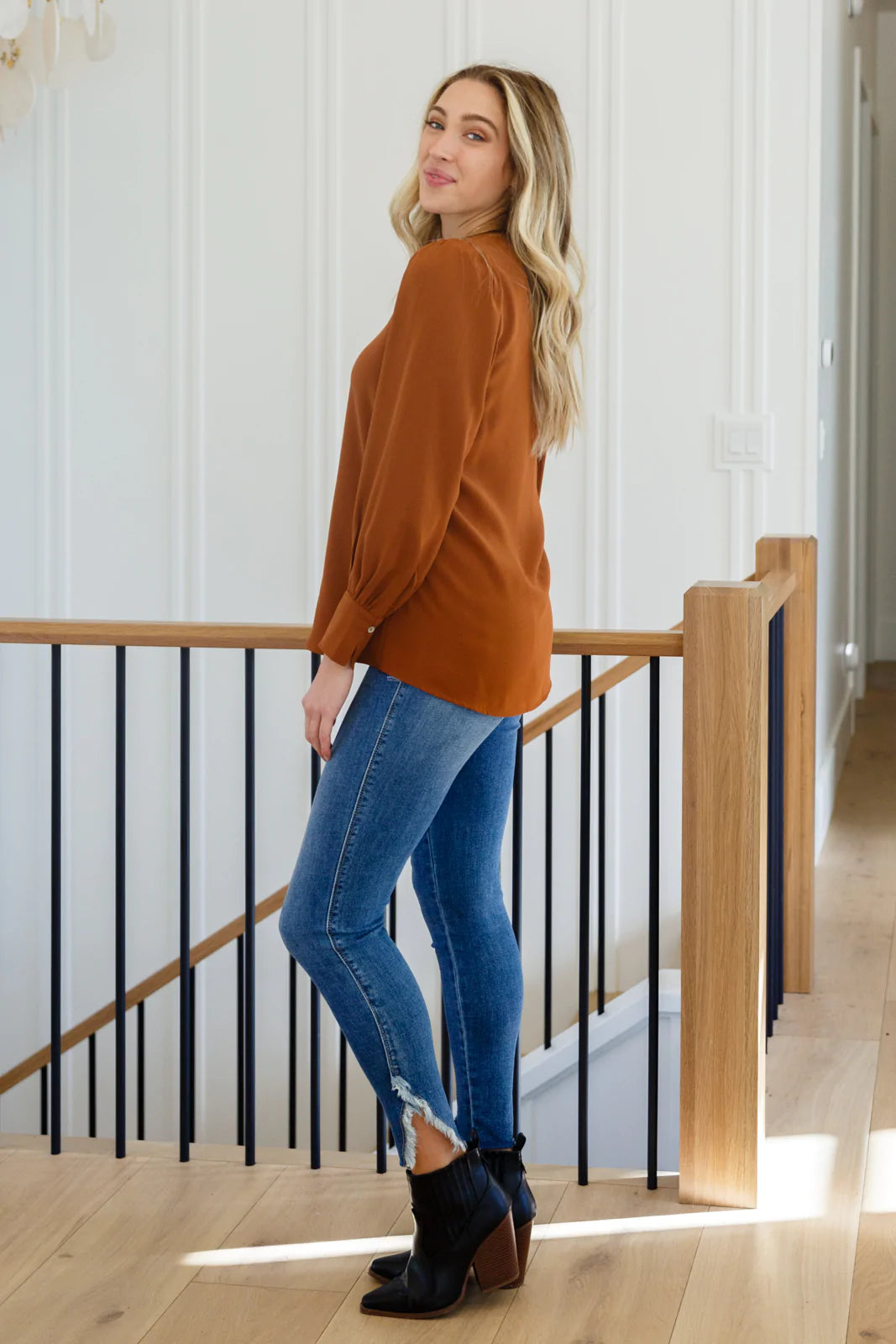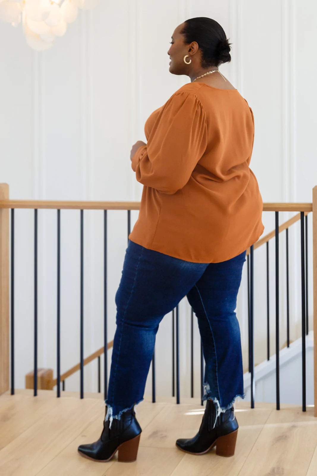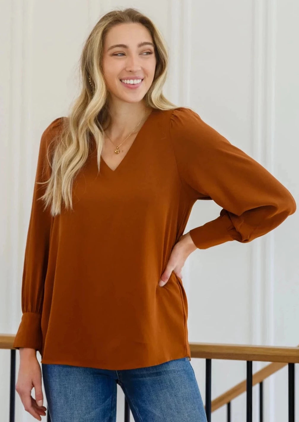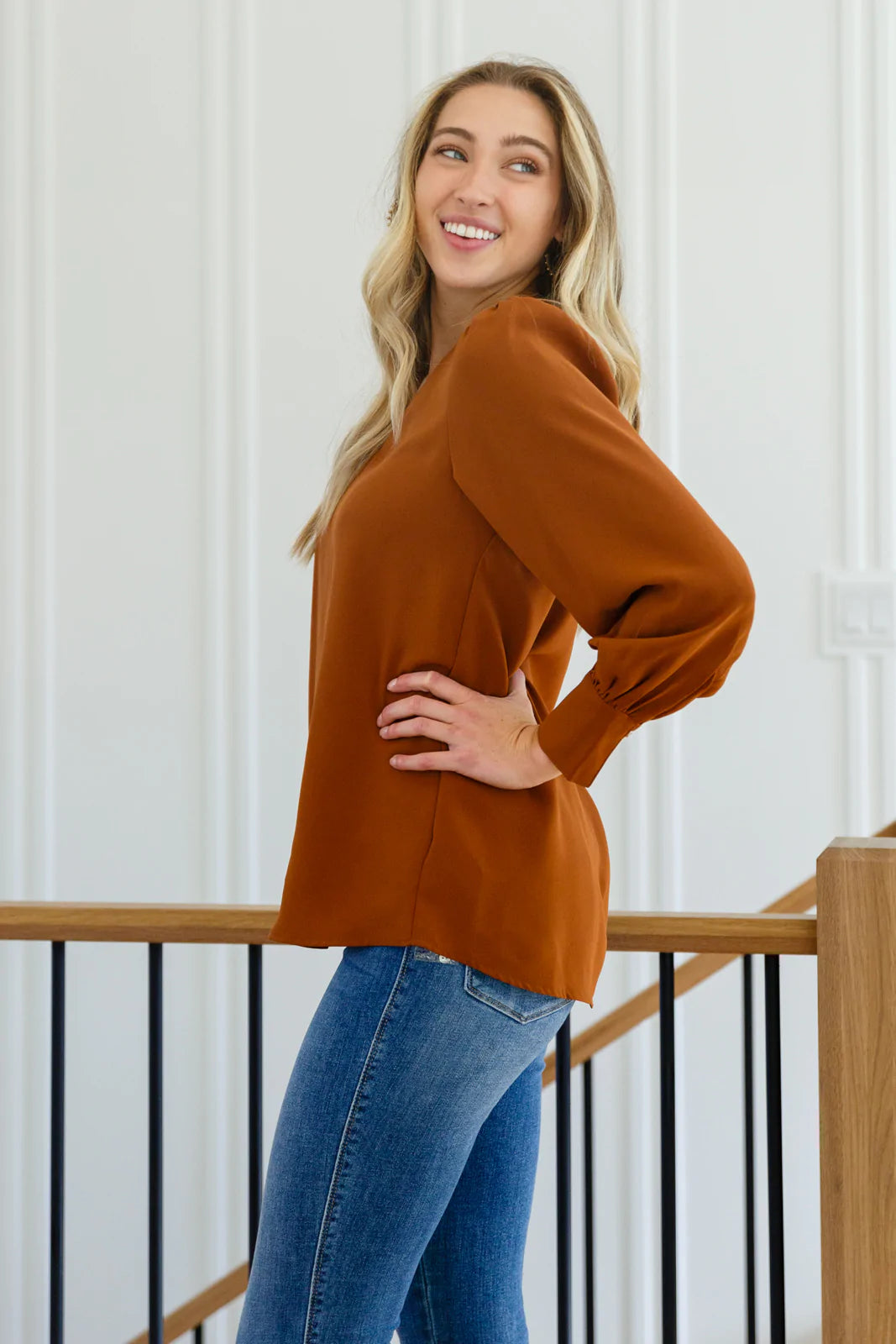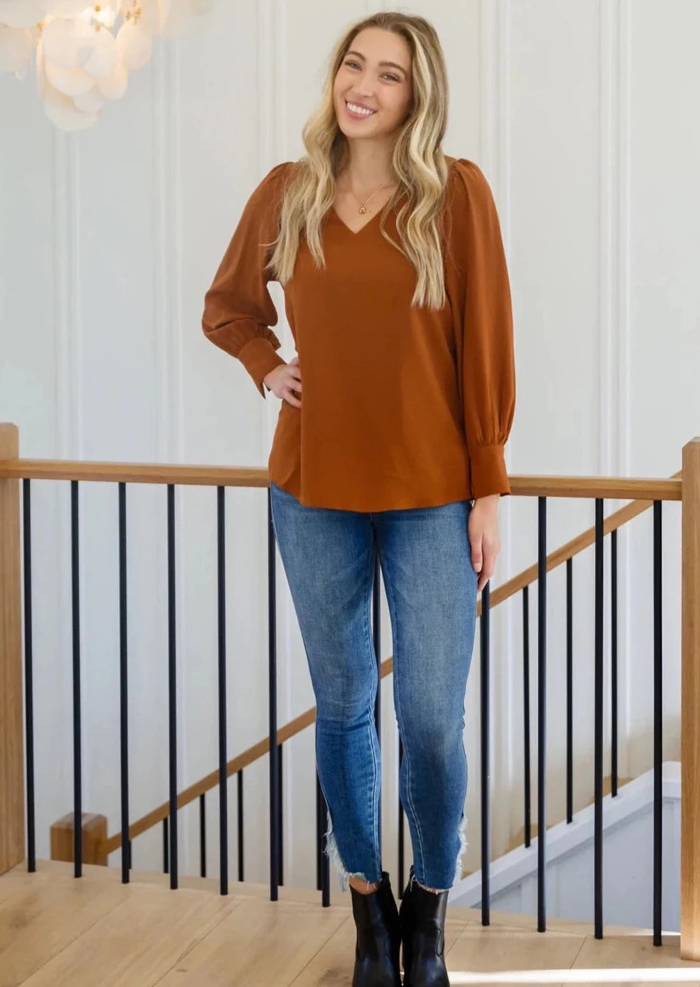 It would be impossible to have a bad time in the Enjoy This Moment V Neck Blouse In Toffee! This stunning top features a v-neckline with a loose fit bodice and slightly rounded hem. Gorgeous balloon sleeves are gathered at the shoulder with a split cuff detail and a functional button. This top is perfect for your next outing!