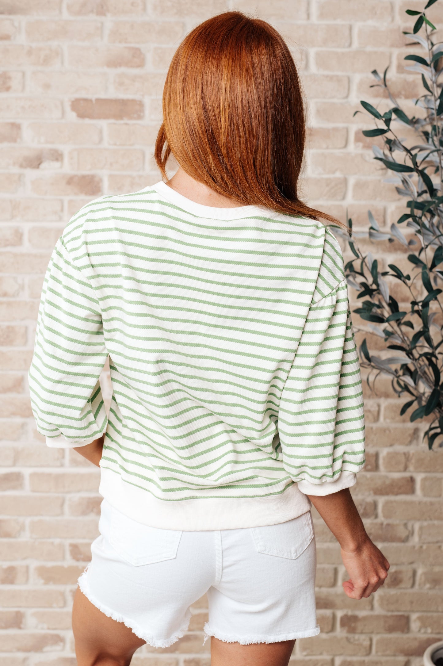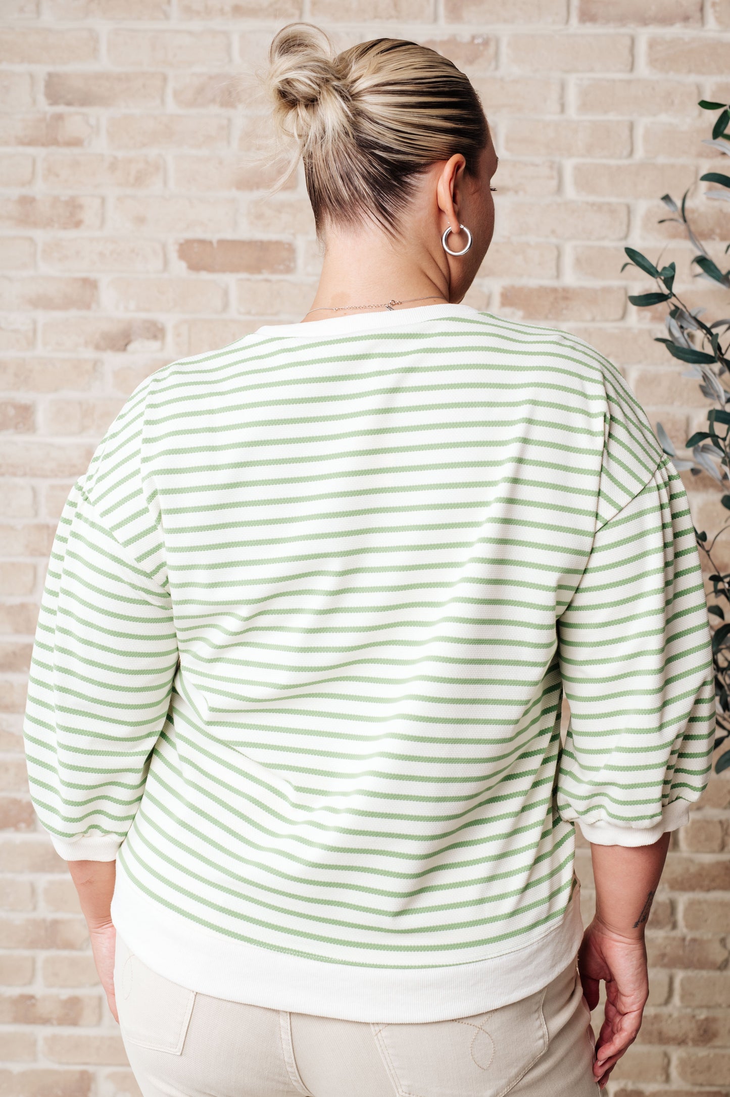 Add a playful touch to your wardrobe with our Enrichment Time Striped Top! Made with midweight sweater knit for a high-stretch, comfortable fit. Featuring a round, ribbed neckline, balloon sleeve, and exaggerated ribbed hem. Perfect for a quirky and fun look.
