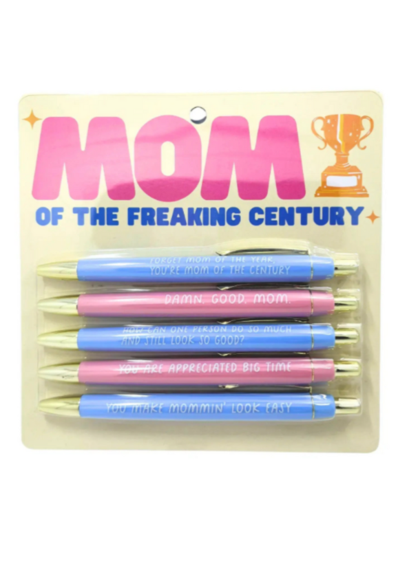 This set includes 5 sleek black ballpoint pens - forget "Mom of the Year," you're the freaking century champion! It's incredible how much you do and still look amazing. You're seriously appreciated and make momming look like a breeze. These funny pens are perfect for stocking stuffers, holiday gifts, under $20 gifts, or just to show some love on Mother's Day.