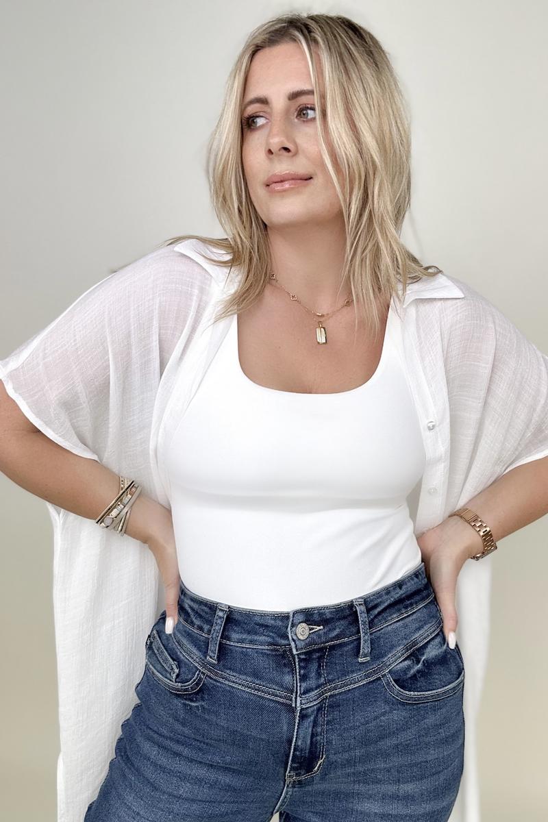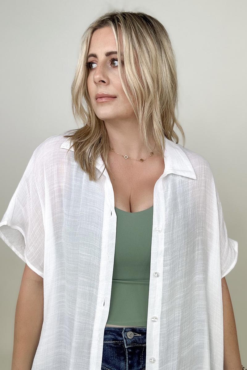 Model Reagan is size 14/16 40 D wearing a size 1X. Can size down to the XL