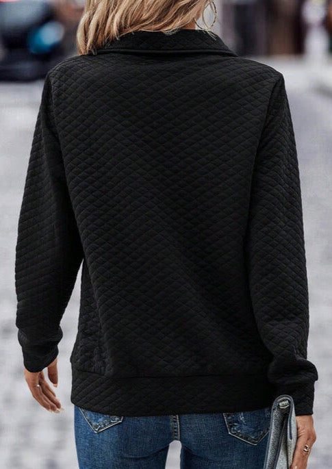 Half Zip Collar Solid Color Long Sleeve Sweatshirt