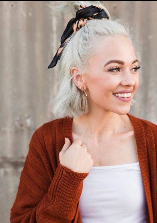 These Scrunchie Scarves are made from quality silk-feeling materials. They open up to a large square and can be detached from the scrunchie so they can be used in many different ways.