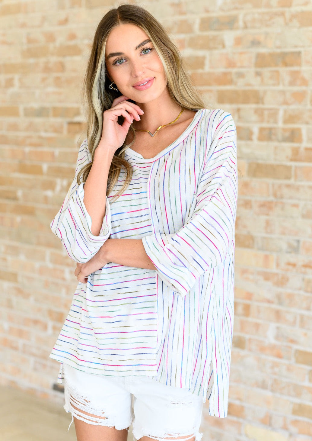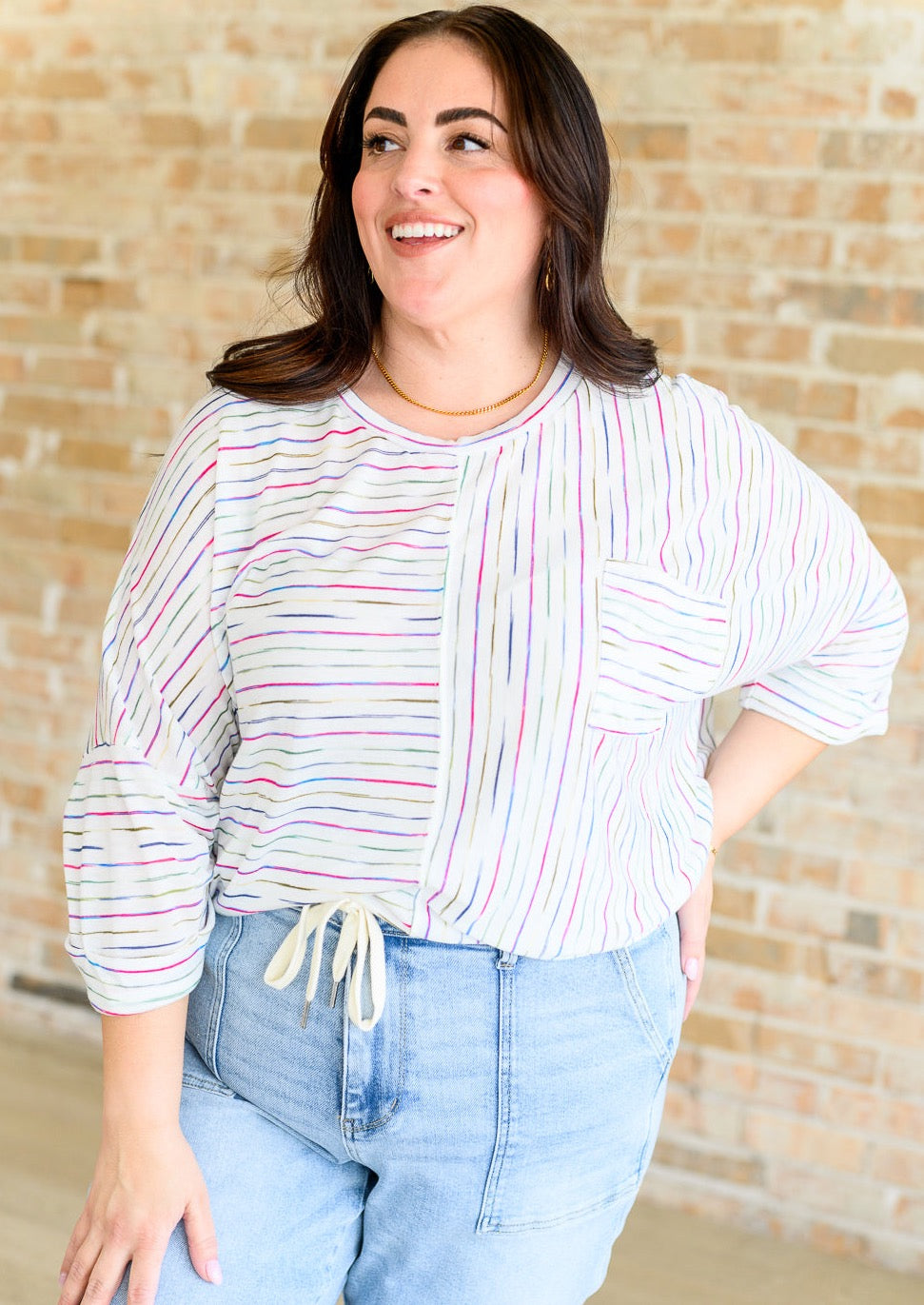 Indulge in the effortless style and comfort of our Love The Passion Drop Shoulder Top. Its lightweight jersey knit and round neckline provide a comfortable and flattering fit. The drop shoulder and patch pocket add a touch of modern flair, while the tacked sleeve cuff and stepped hem create a unique and eye-catching silhouette. Feel confident and stylish with the side slit detail.