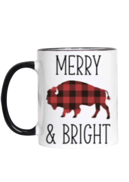 We love buffalo plaid...on a buffalo..all merry and bright! Drink your morning cup of coffee around the holidays with this Merry and Bright Christmas mug.