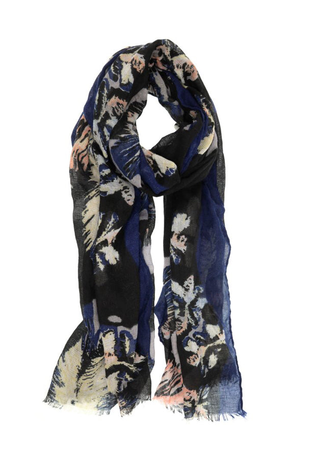 Navy Feathery Bloom Scarf