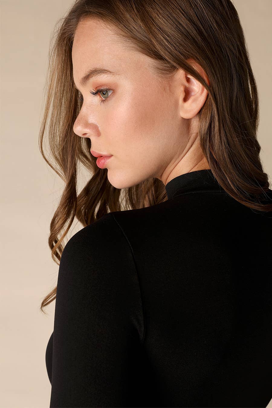 Elevate your wardrobe with our luxurious Lolo Mock Neck Crop Top in White. Crafted in the USA with precision and attention to detail, this seamless crop top boasts a mock neckline, long sleeves, and a form-fitting silhouette. Made from a premium blend of 92% Nylon and 8% Spandex, it is the perfect addition to your collection of essentials.