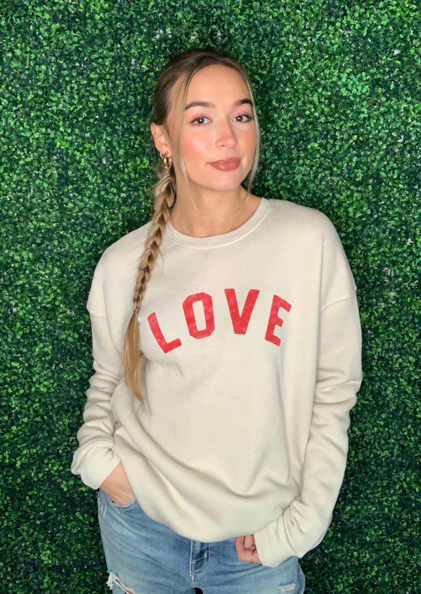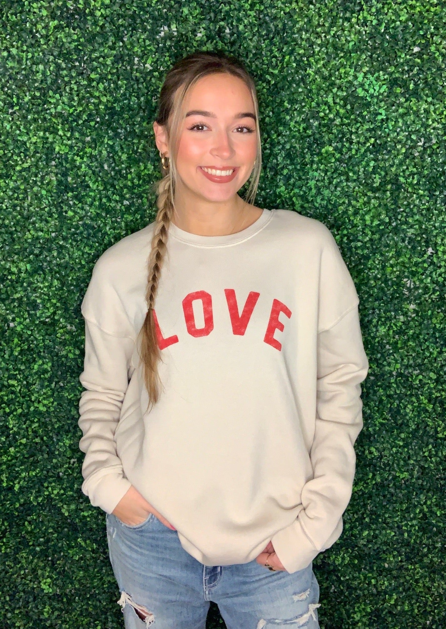 LOVE Graphic Sweatshirt Unisex Fleece Pullover Relaxed Fit. -Spun from plush sponge fleece fabric -Remarkably soft unisex pullover -Crewneck sweatshirt lends itself to daily wear and year-ro und layering. -Featuring ribbed cuffs and waistband, a crew neck, and fashion-forward fleece fabrication.