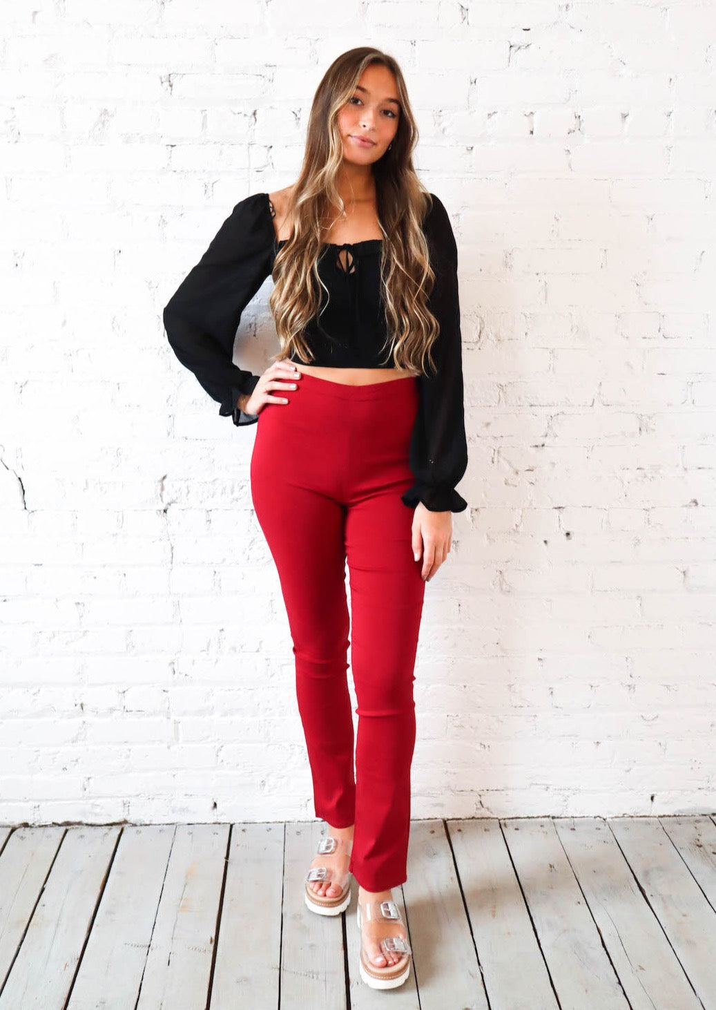 You'll be ready to take on the world in these Old School High Waist Skinny Pants! Crafted with a cinching high waistband and figure-skimming fit, these pants will flatter your curves beautifully. The rayon fabric is soft and lightweight for all-day comfort. Plus, the slightly flared hem adds an extra touch of style. With their retro design, you'll feel confident and look great wherever you go!