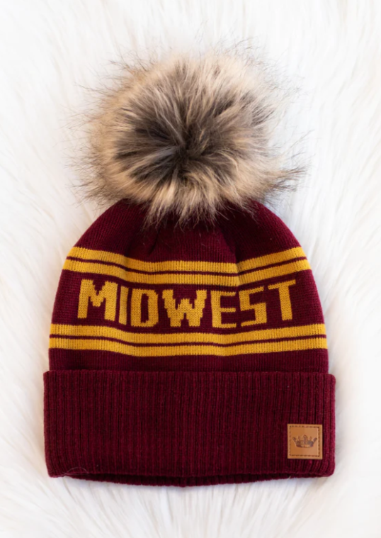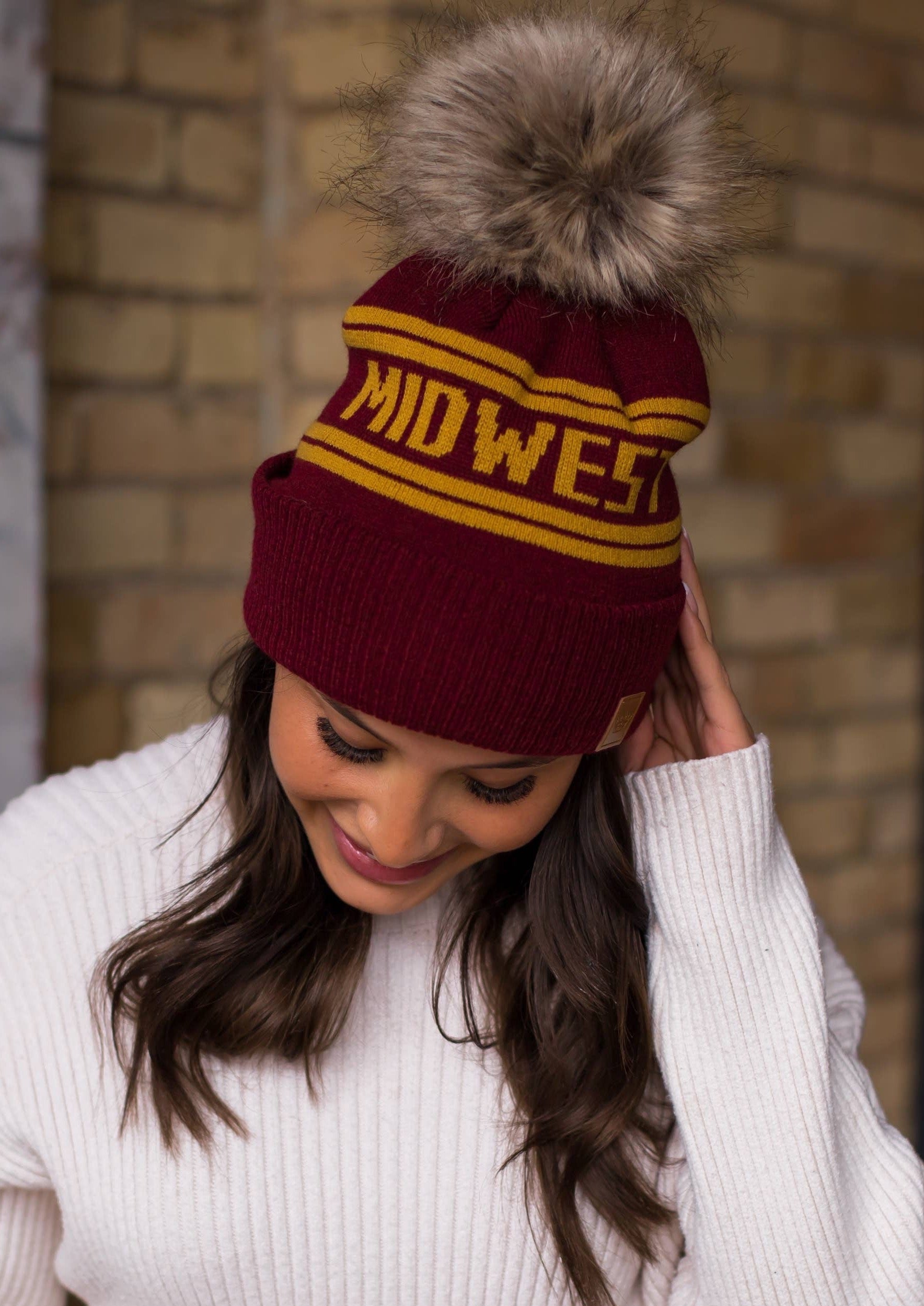 Maroon & gold Midwest knit hat Natural faux fur pom accent. Perfect for a MN Gophers Game!!
