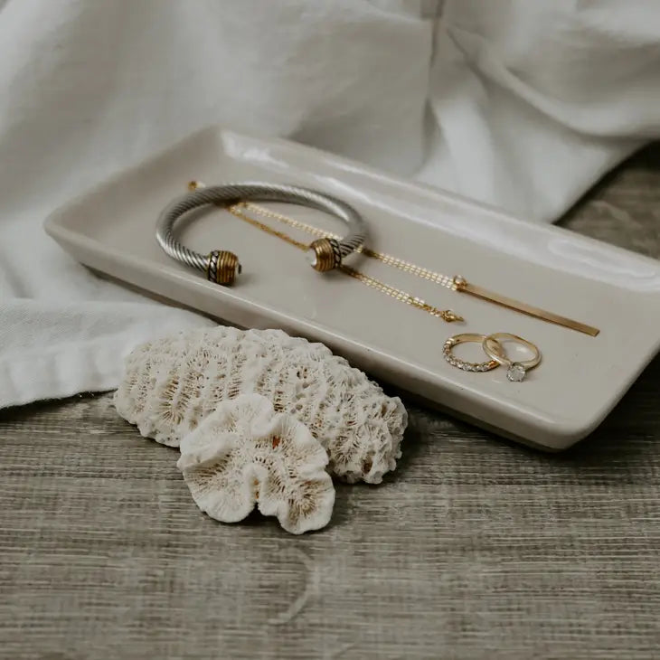 Our cream stoneware tray is the perfect addition to any kitchen and home. These rustic trinket dishes are also perfect as a jewelry dish, key holder, candle display, soap dispenser holder or even as an appetizer plate! The uses are endless for our cream speckled dish!