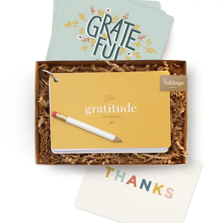 The Gratitude Journal is a simplified way to cultivate a heart of gratitude. Journal pages are open-ended, with 26 double-sided journal pages (52 journal entries... one per week for a year!) This set also includes six beautifully-illustrated thank-you postcards.
