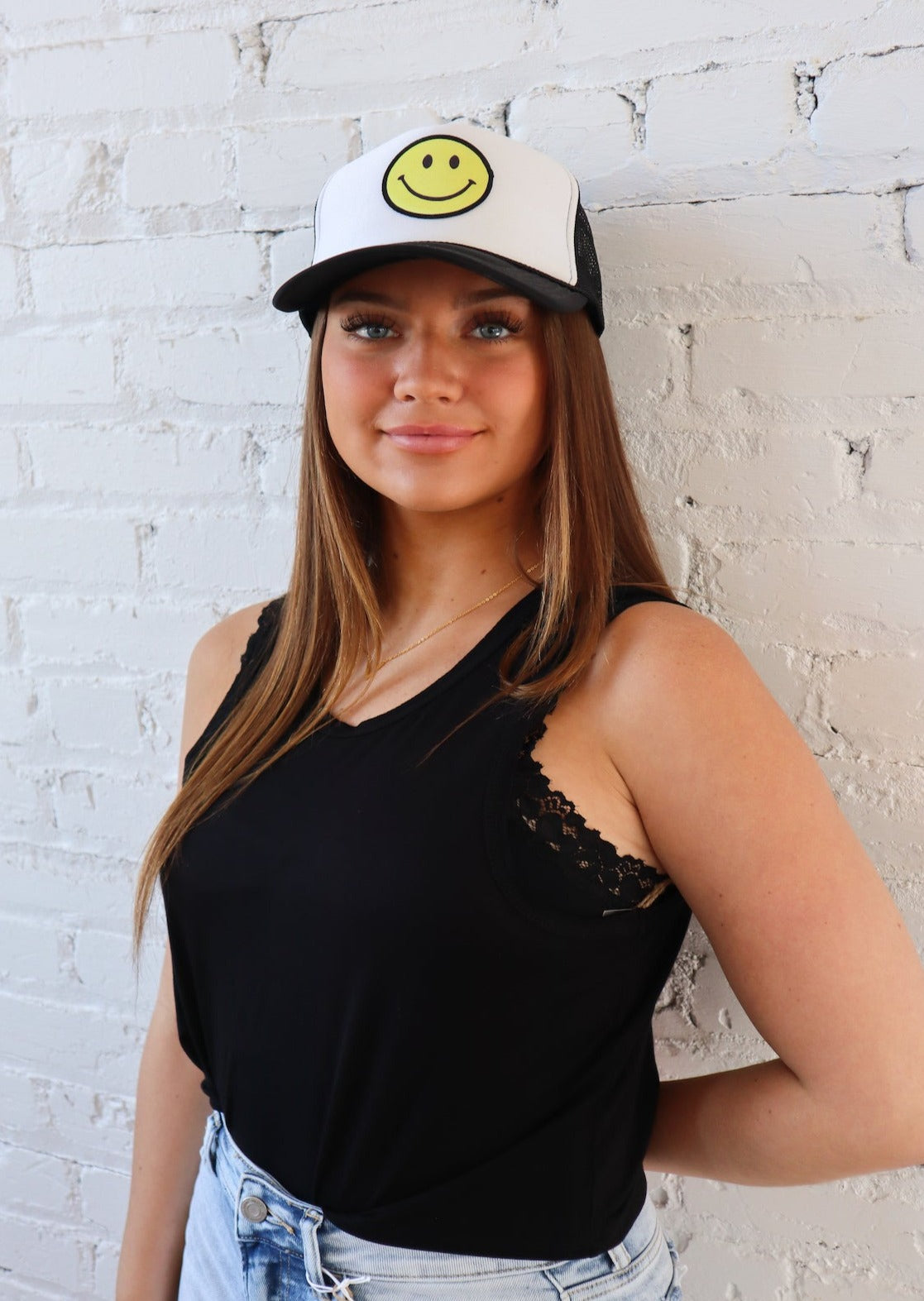 Bring a smile to everyone you pass by! Smiley face trucker hats are sure to keep you and everyone else smiling. Adjustable—one size fits most. Comfortable and breathable. Keep smiling!
