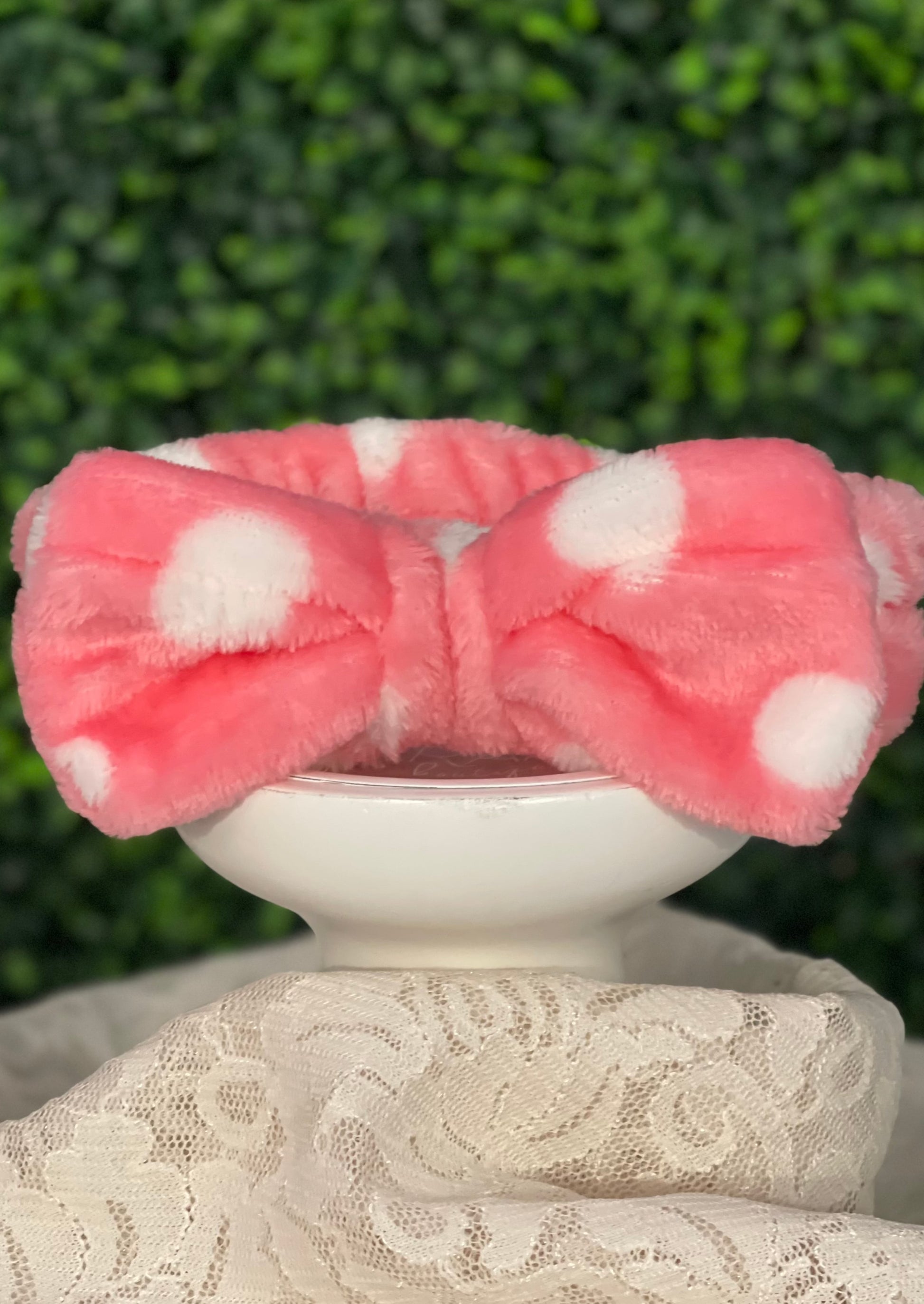 Spa Headband - Pink with White Polka Dots