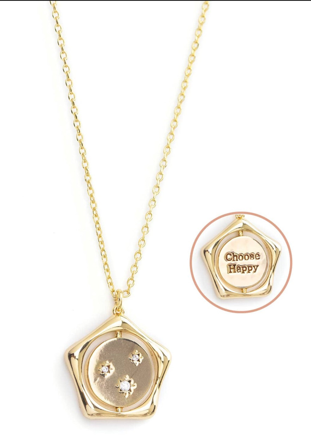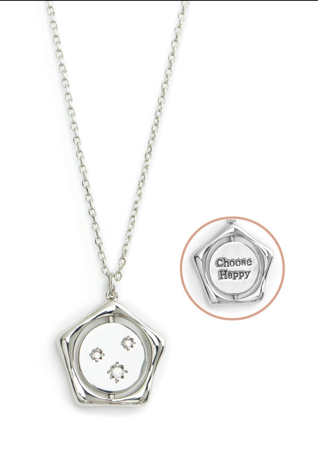 Choose Happy + Multi Starburst Flip Necklace in Silver