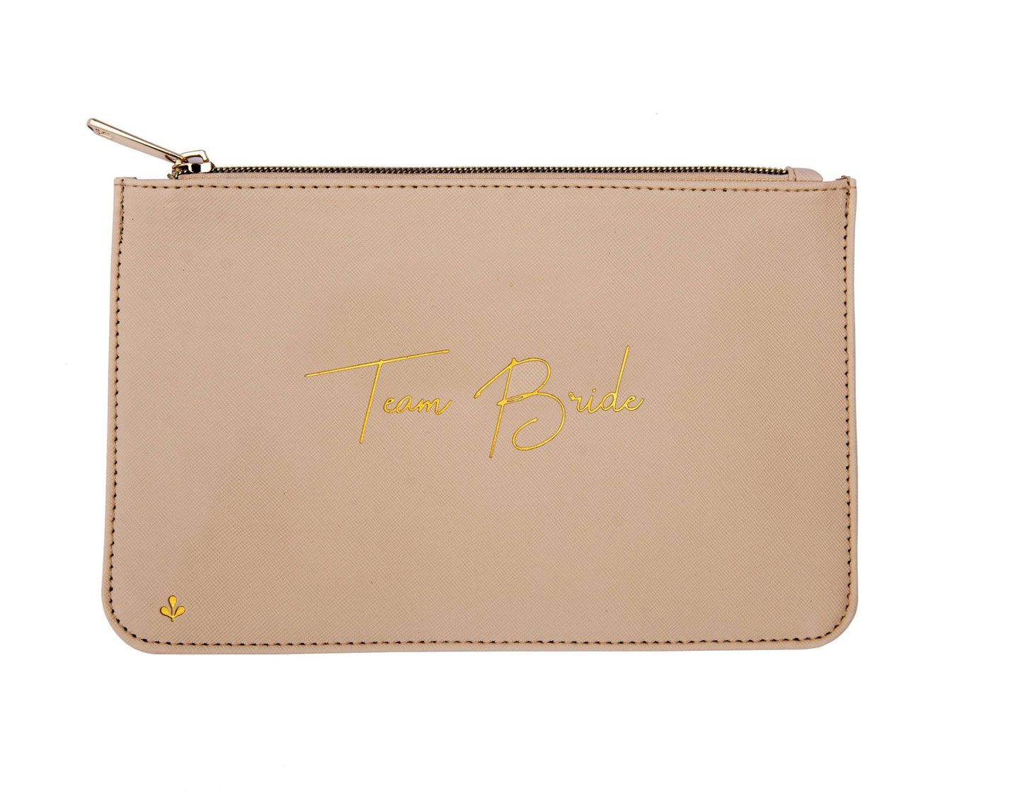 Get ready to slay the day with this 8"x5" Zipper Pouch in creamy white and gold embossing, perfect for Team Bride! (Sorry, not intended for actual sword-slaying, but it will definitely hold all your essentials in style.)