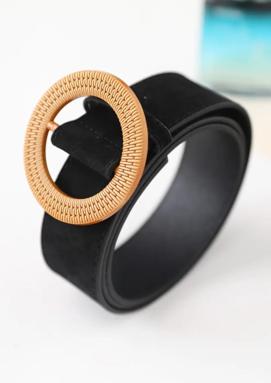 Black Suede Circle Buckle Belt