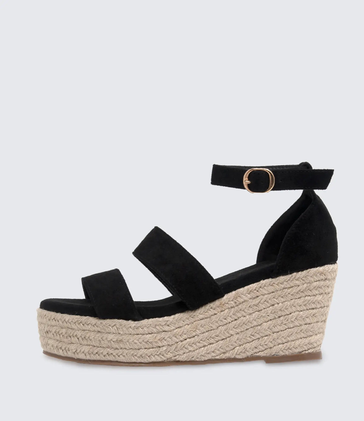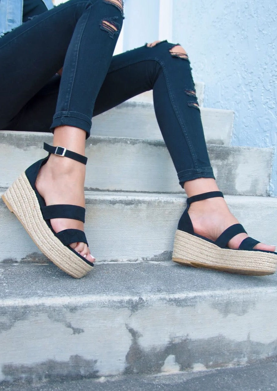 Elevate your look with this warm-weather essential. These wedges feature a jute-wrapped platform to complement all your sunny styles. An ankle strap keeps you secure, while the two suede straps complete the sophisticated look.
