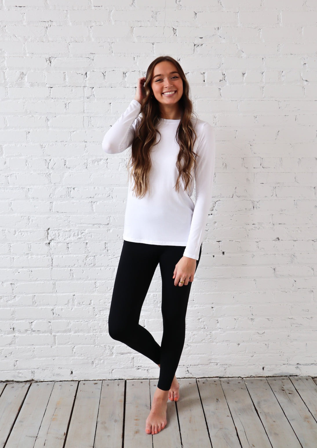 Made with our signature soft fabrics, this long-sleeve style features a soft, lightweight crew neck design. Perfect for layering in a comfy fit!