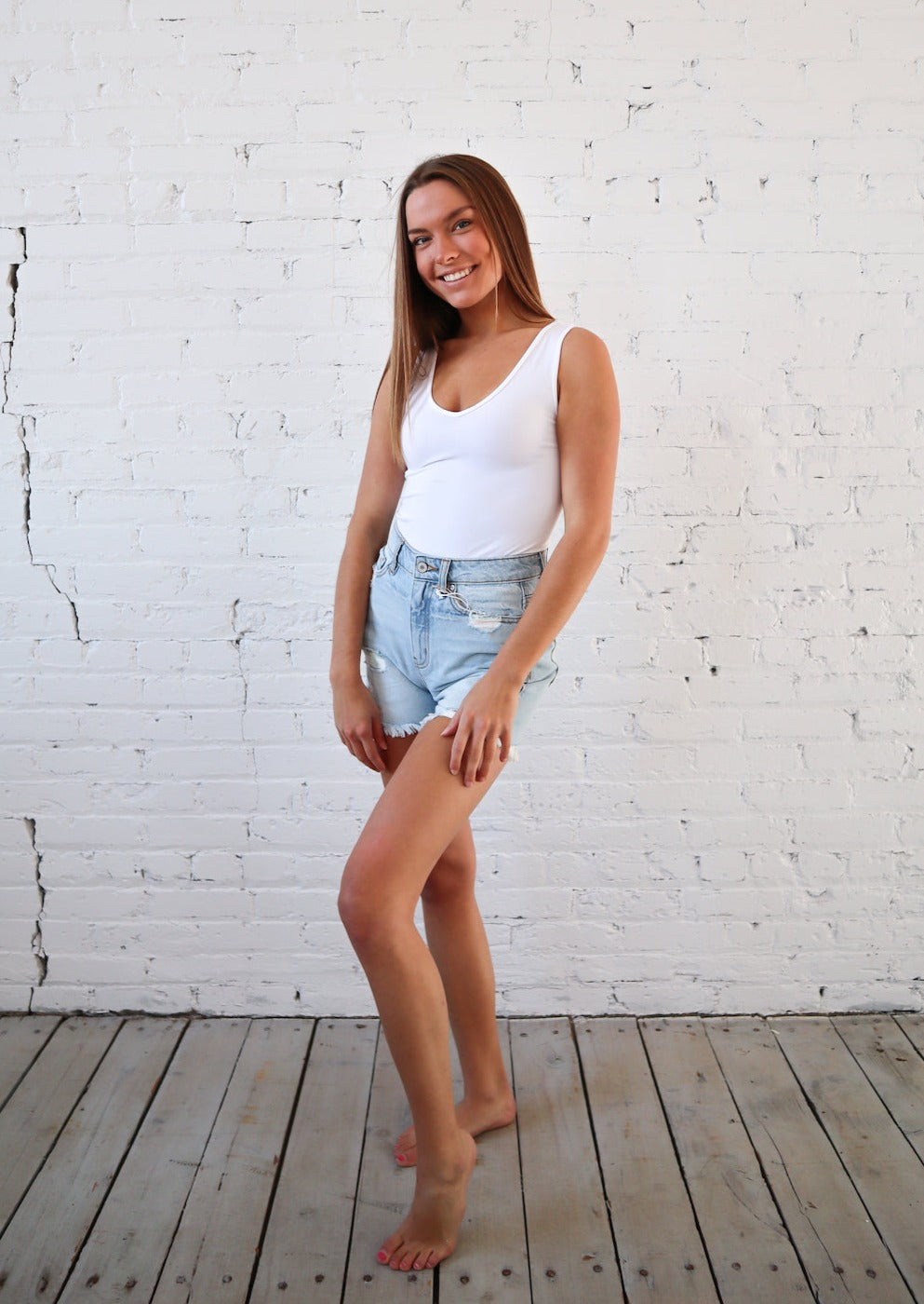 You'll love our White V-Neck/Scoop Neck Basic Tank! This versatile tank is made of luxuriously soft rayon fabric, providing a comfortable and smoothing fit for all body types. The one size fits from size 0 to 24, making it the perfect addition to any wardrobe. Plus, you can wear this tank two different ways - with either the scoop neck in the front or the v neck in the front! Get ready to feel your best with this stylish and comfy basic tank.