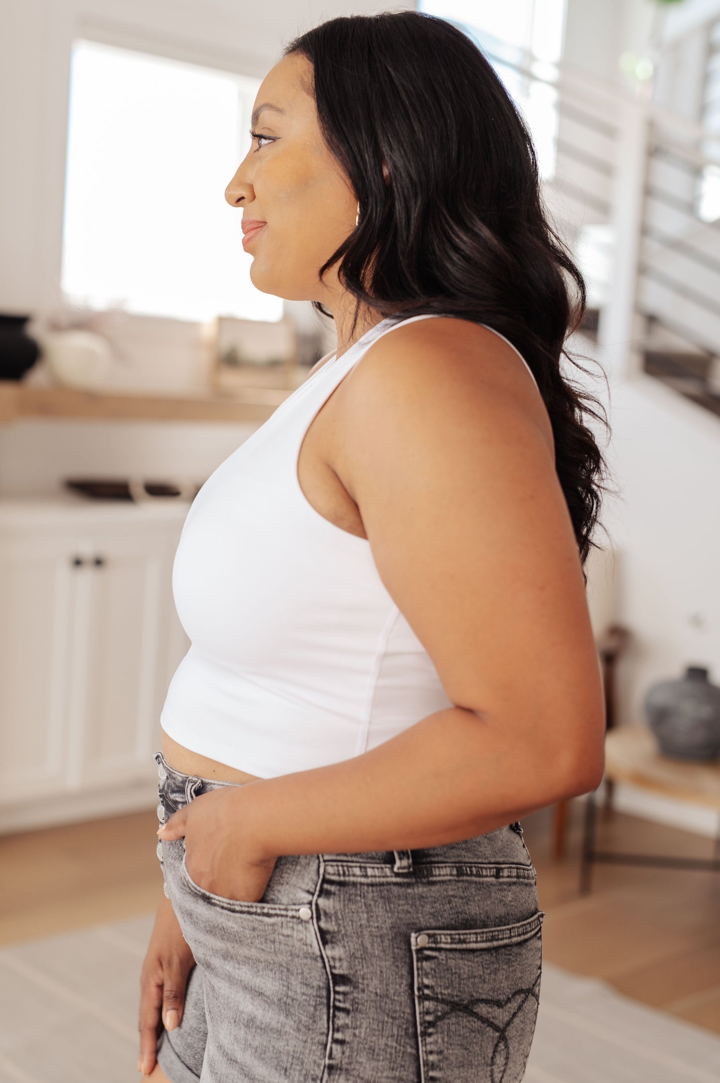 Stay cool and trendy with our Yesterday's Crop Tank! Made from luxuriously soft brushed microfiber, it features a round neckline and halter fit, with a built-in sports bra for added comfort and support. Removable cups and a cropped design make this tank perfect for any workout or casual outing.