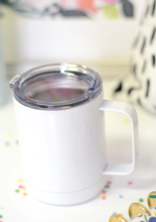 * This travel mug has a handle